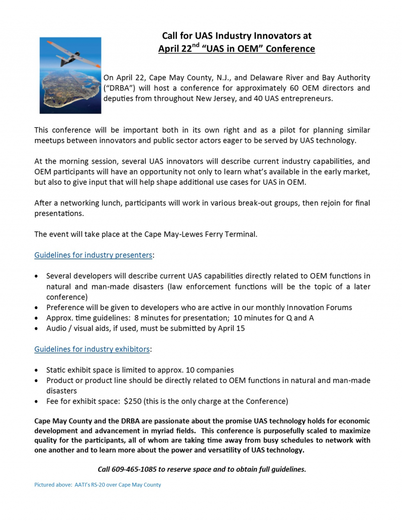 Call for UAS Industry Innovators at April 22nd "UAS in OEM" Conference